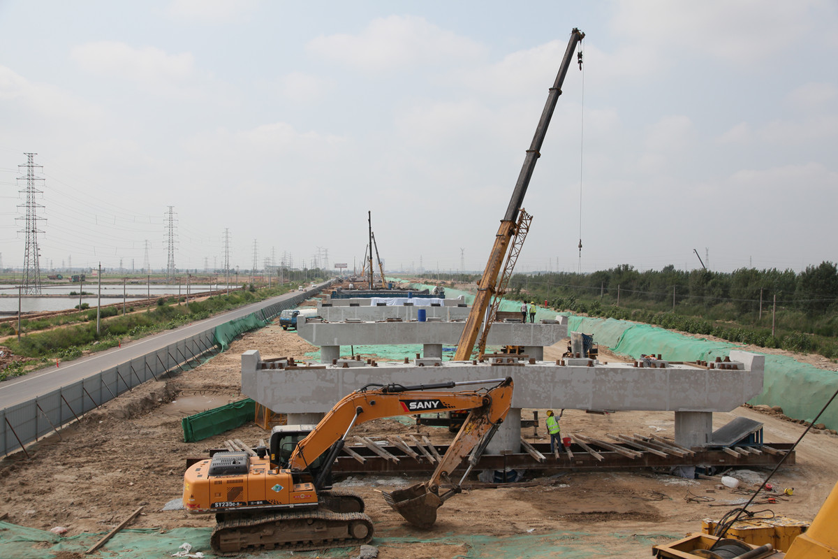 濰坊市彌河流域普通國省道7座橋梁防洪提升改造工程施工六標(biāo)段(S224大沂線彌河橋)位于濱海經(jīng)濟(jì)技術(shù)開發(fā)區(qū)內(nèi),地質(zhì)狀況以粉砂、亞黏土等為主?,F(xiàn)有橋梁中心樁號(hào)為K4+036,跨徑組合為4×13m。上部結(jié)構(gòu)采用鋼筋混凝土空心板,下部結(jié)構(gòu)為鉆孔灌注樁基礎(chǔ)?,F(xiàn)有橋梁拆除重建特大橋,按照集散一級(jí)公路要求橋梁寬度為21m,上部結(jié)構(gòu)采用30m預(yù)應(yīng)力混凝土小箱梁,橋跨組合為93×30m,前進(jìn)方向右夾角90°,中心樁號(hào)K5+427,下部結(jié)構(gòu)采用肋板臺(tái)、柱式墩,鉆孔灌注樁基礎(chǔ),按摩擦樁設(shè)計(jì),橋梁全長2797m。工程總造價(jià)2.516億元。