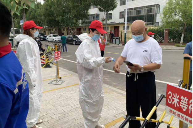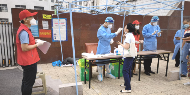 檢測點上,黨員志愿者們配合社區(qū)工作人員維持檢測隊伍秩序,講解掃碼檢測流程,對未佩戴口罩的人員主動上前贈送口罩,提醒市民群眾時刻繃緊防疫意識,講究個人衛(wèi)生,并為他們普及疫情防控小常識,為前來檢測人員測溫,耐心幫助老年居民掃碼操作......一抹“志愿紅”緩解了核酸采樣人員的工作壓力,溫暖了社區(qū)居民的心田。