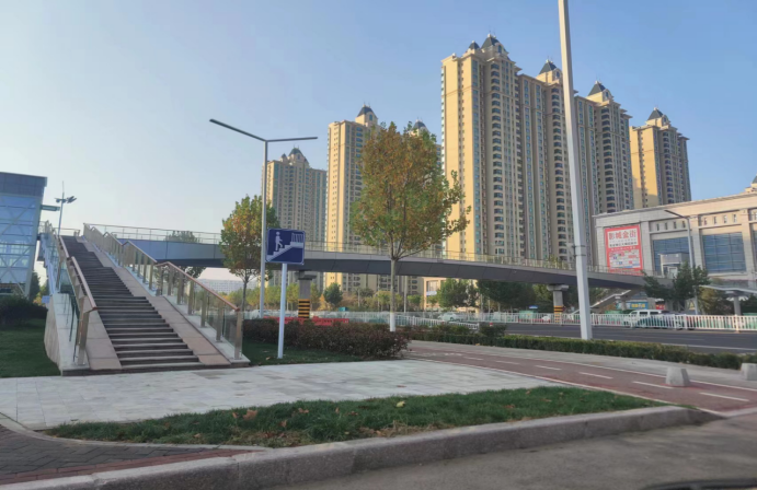 杏林街渤海路口天橋工程,主橋跨徑為21.94m+33.02m+16.92m=71.88m,橋下凈空5.0米,橋面凈寬度3.5 米,全橋共設(shè)四部梯道,兩部直梯。梯道寬度2.6米,每側(cè)梯道分別采用1:2和1:4兩種坡度,1:2梯道供行人使用,1:4梯道供行人及手推車(chē)使用。直梯位于主橋兩端。2022年6月6日中標(biāo),中標(biāo)金額924萬(wàn)元。2022年10月18日完工并開(kāi)放交通。