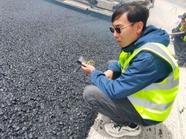 興盛公司道路工程公司經(jīng)理孫澤元嚴(yán)格控制瀝青面層溫度