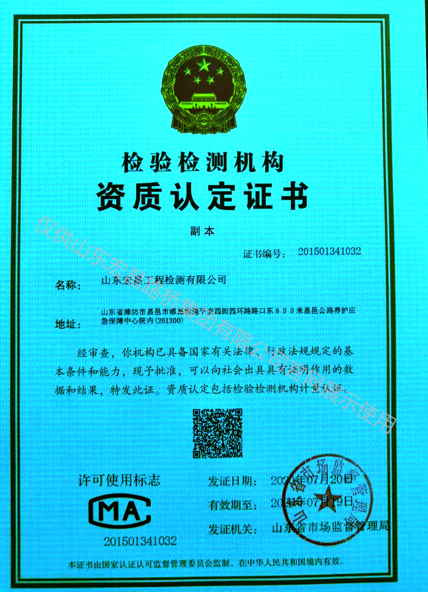 檢驗(yàn)檢測機(jī)構(gòu)資質(zhì)認(rèn)定證書
